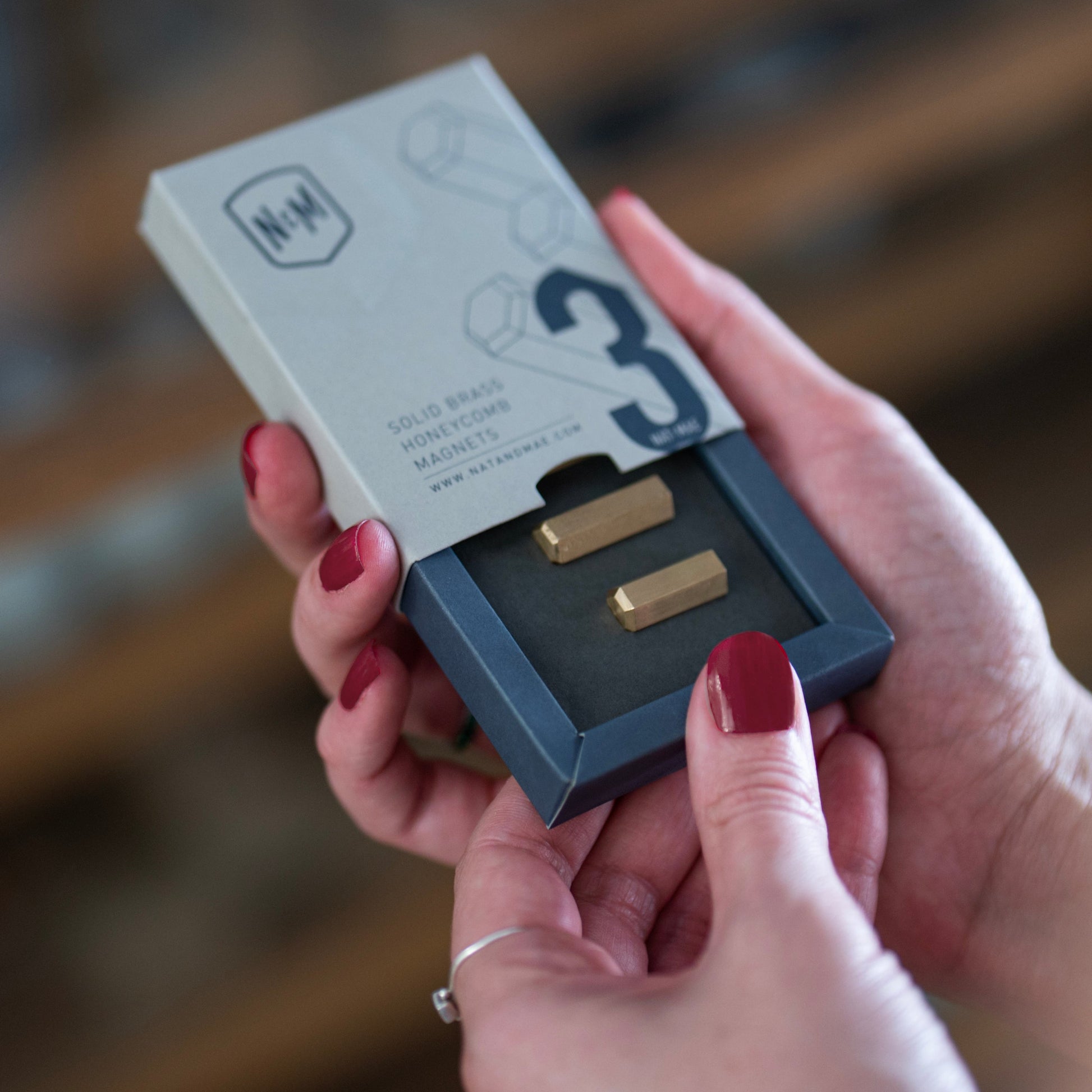 Solid brass hexagonal magnets. To use with our Magnet Boards, or anywhere.